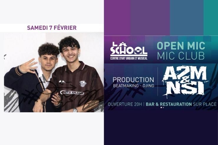 "La prod change de mains… et le feu monte encore d’un cran. Le duo A2M NSI débarque aux commandes du DJing & Beatmaking du MIC CLUB ce samedi ! Nouvelles vibes, nouvelles textures, beats taillés pour les punchlines. Micro ouvert, la prod sera létale. Toujours animé par les maîtres du mic : Killian Alaari & Yass Sogo"